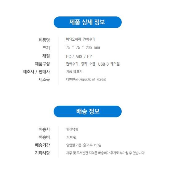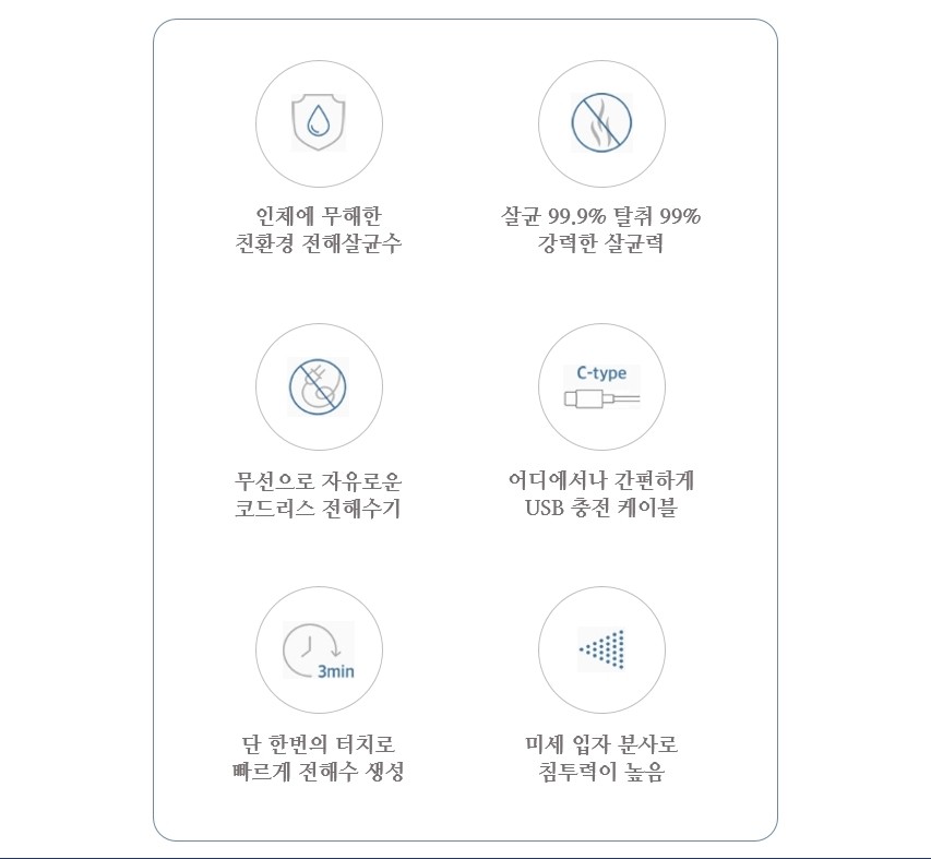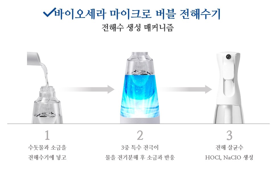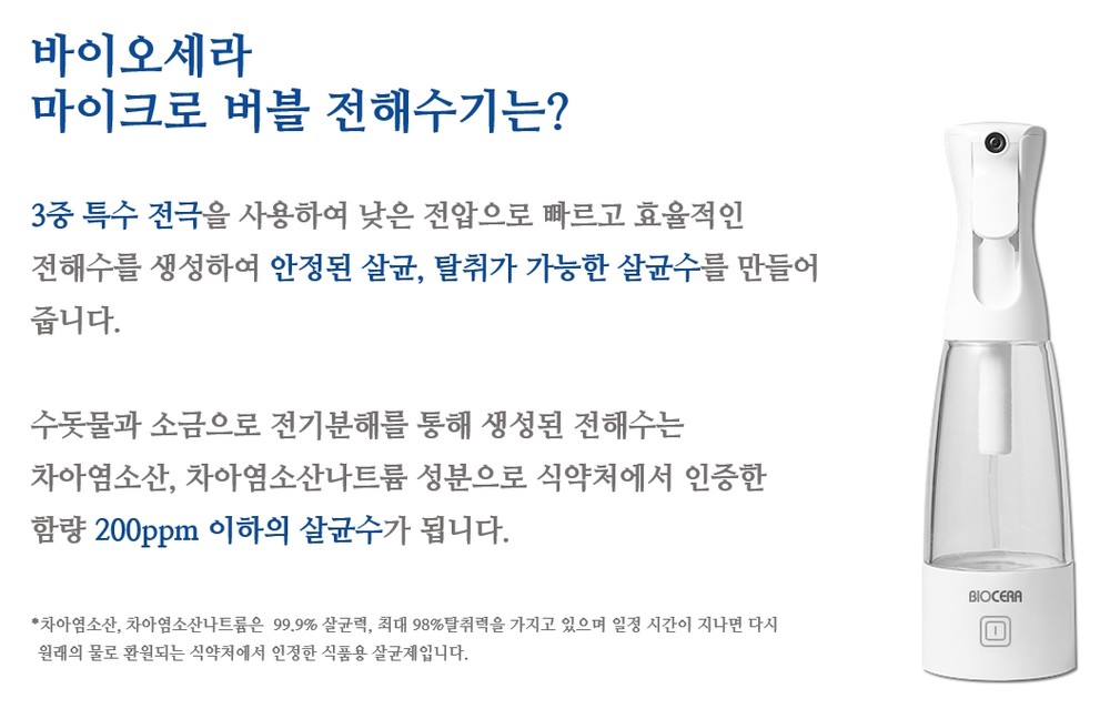 - 오직, 물 만으로 99.9% 강력한 살균 및 탈취
